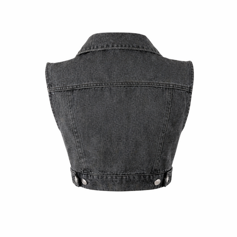 Cropped Dark Wash Denim Jacket with Detachable Zipper Detail and Flare Sleeves