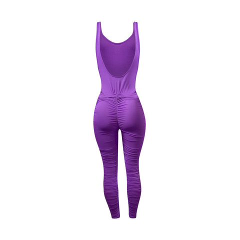Purple Sleeveless Bodysuit and Ruched Leggings Two Piece Set – Stretch Bodycon Outfit