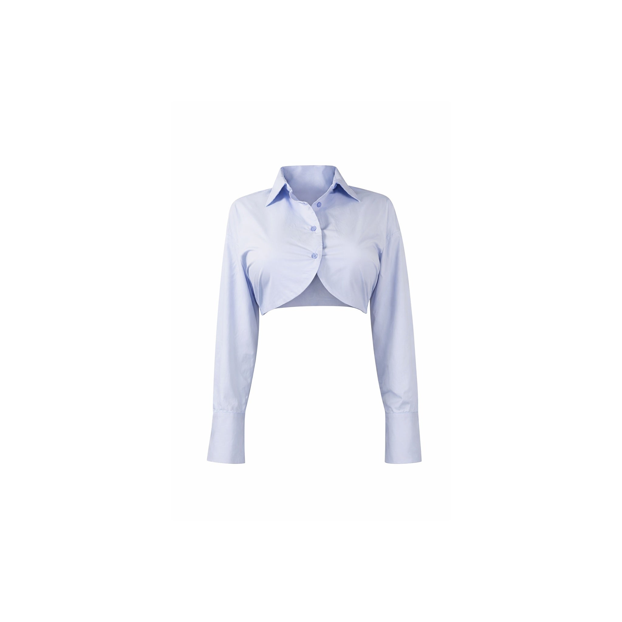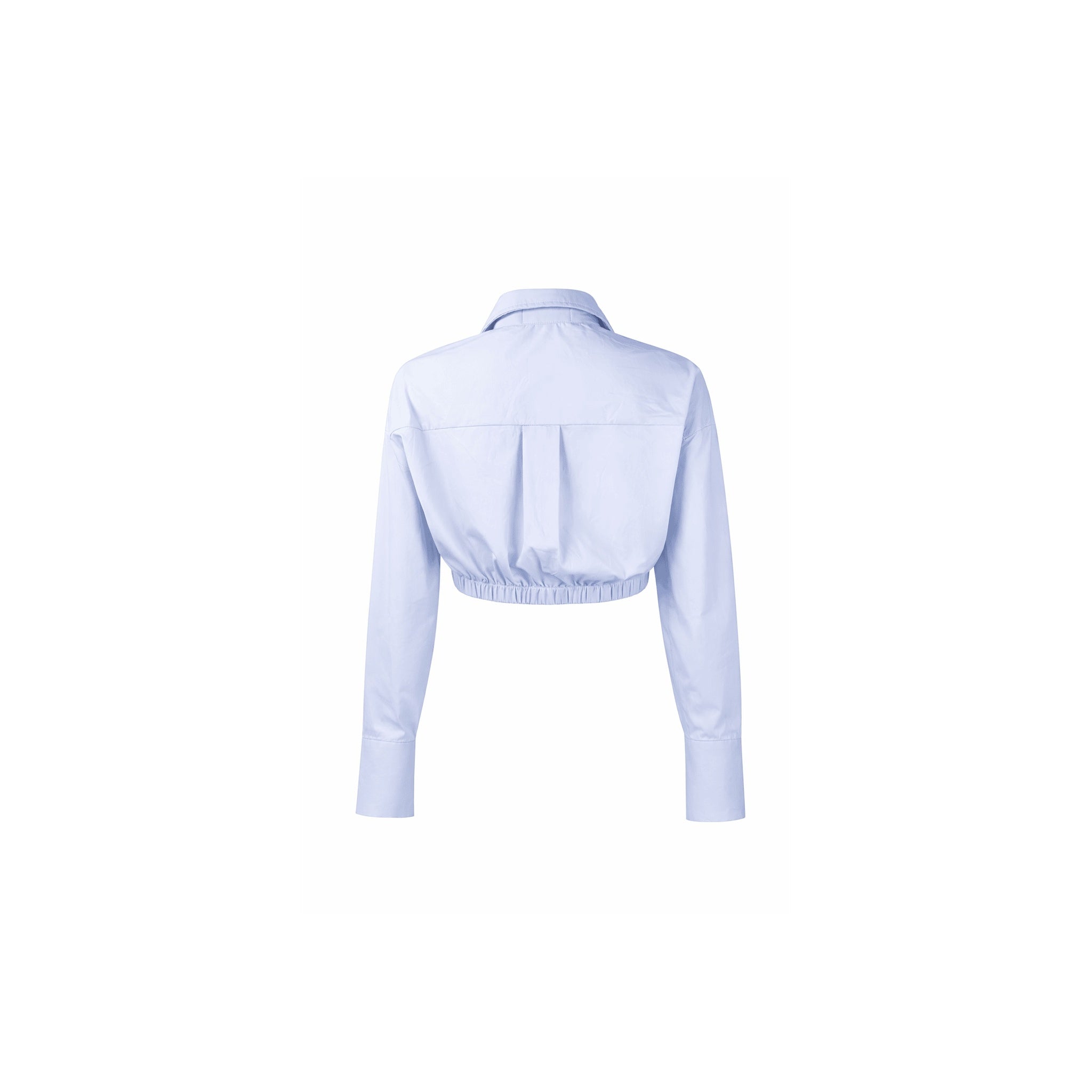 Cropped Long Sleeve Button-Up Shirt with Elastic