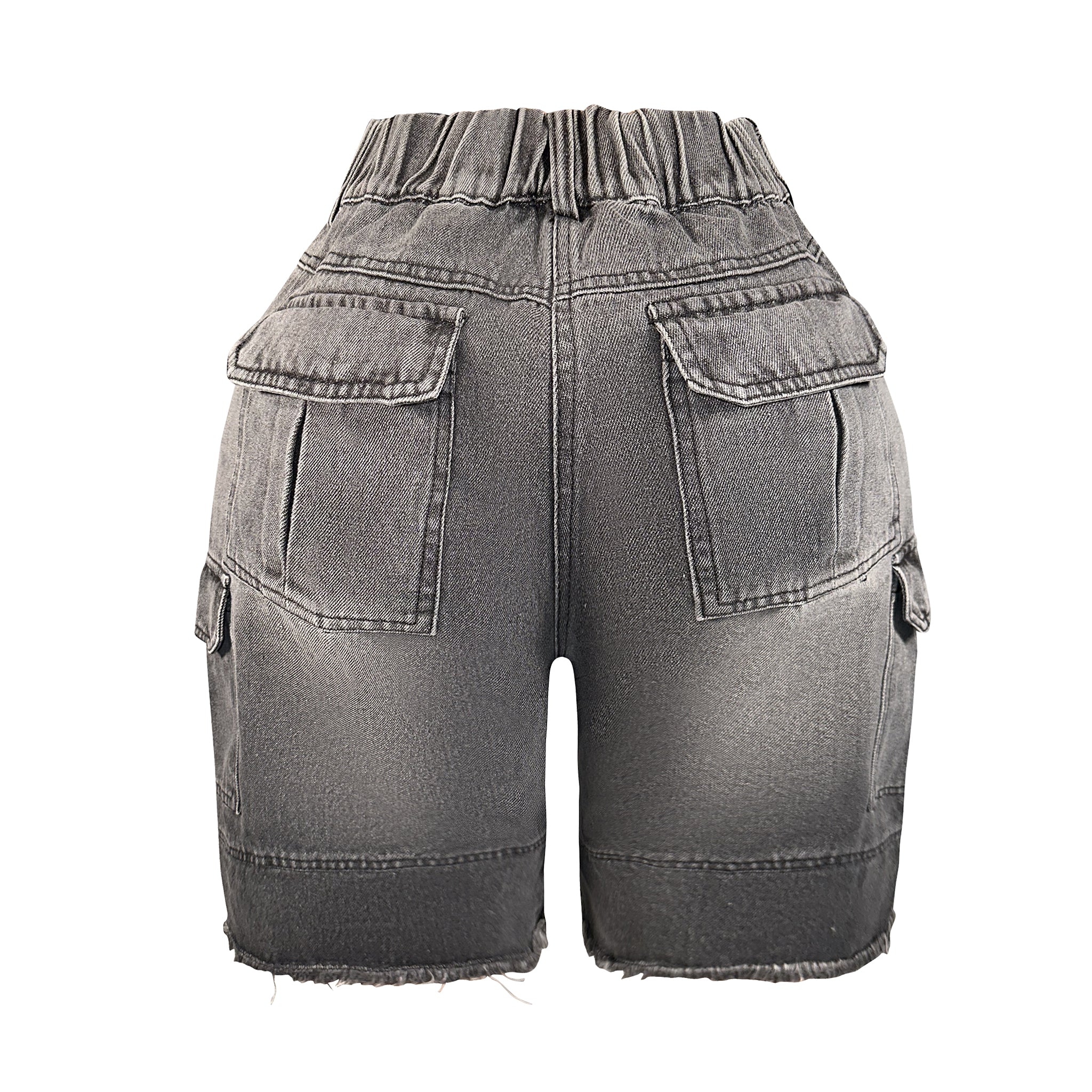 Elastic Waist Denim Cargo Shorts