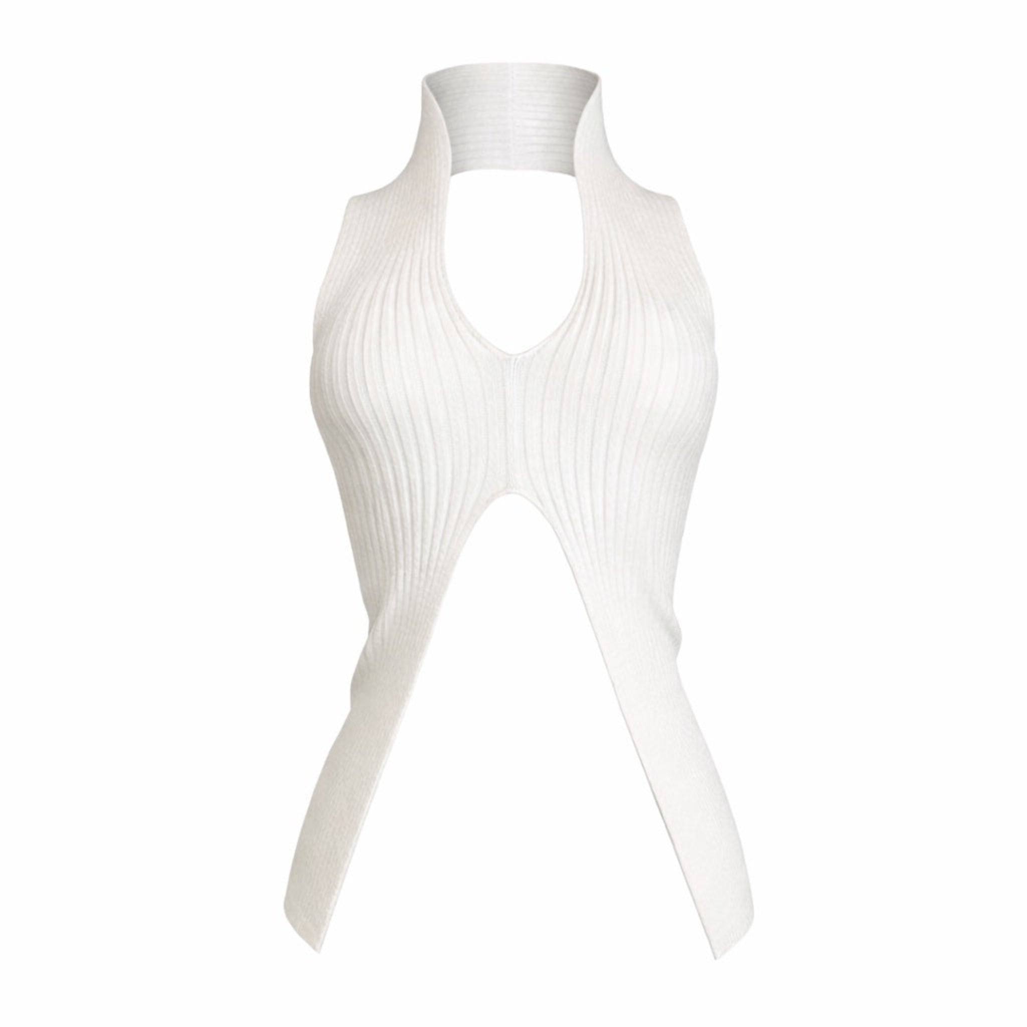 Ribbed Halter Cut-Out Open-Back Knit Top